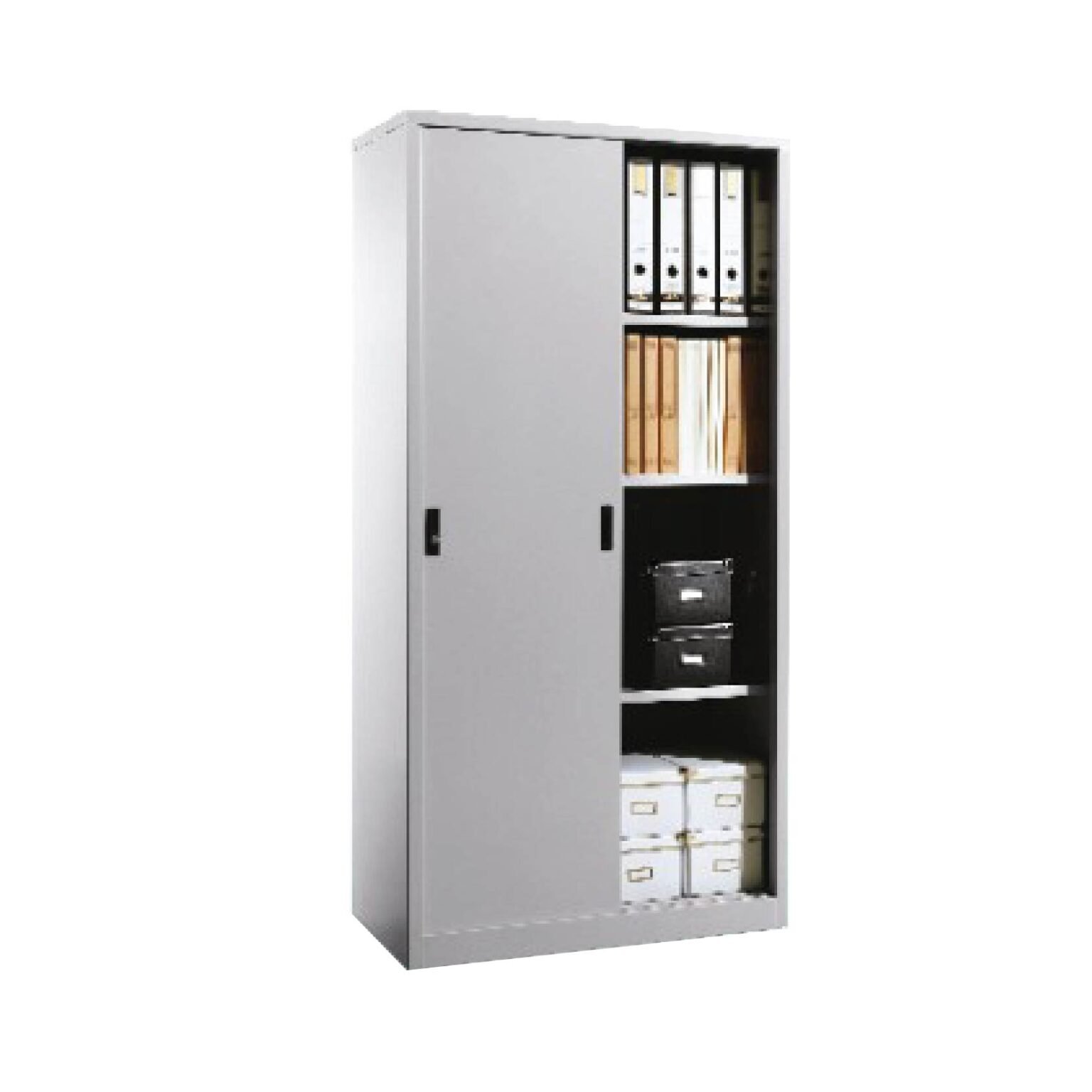 FULL HEIGHT SLIDING DOOR STEEL CUPBOARD WITH 3 SHELVES